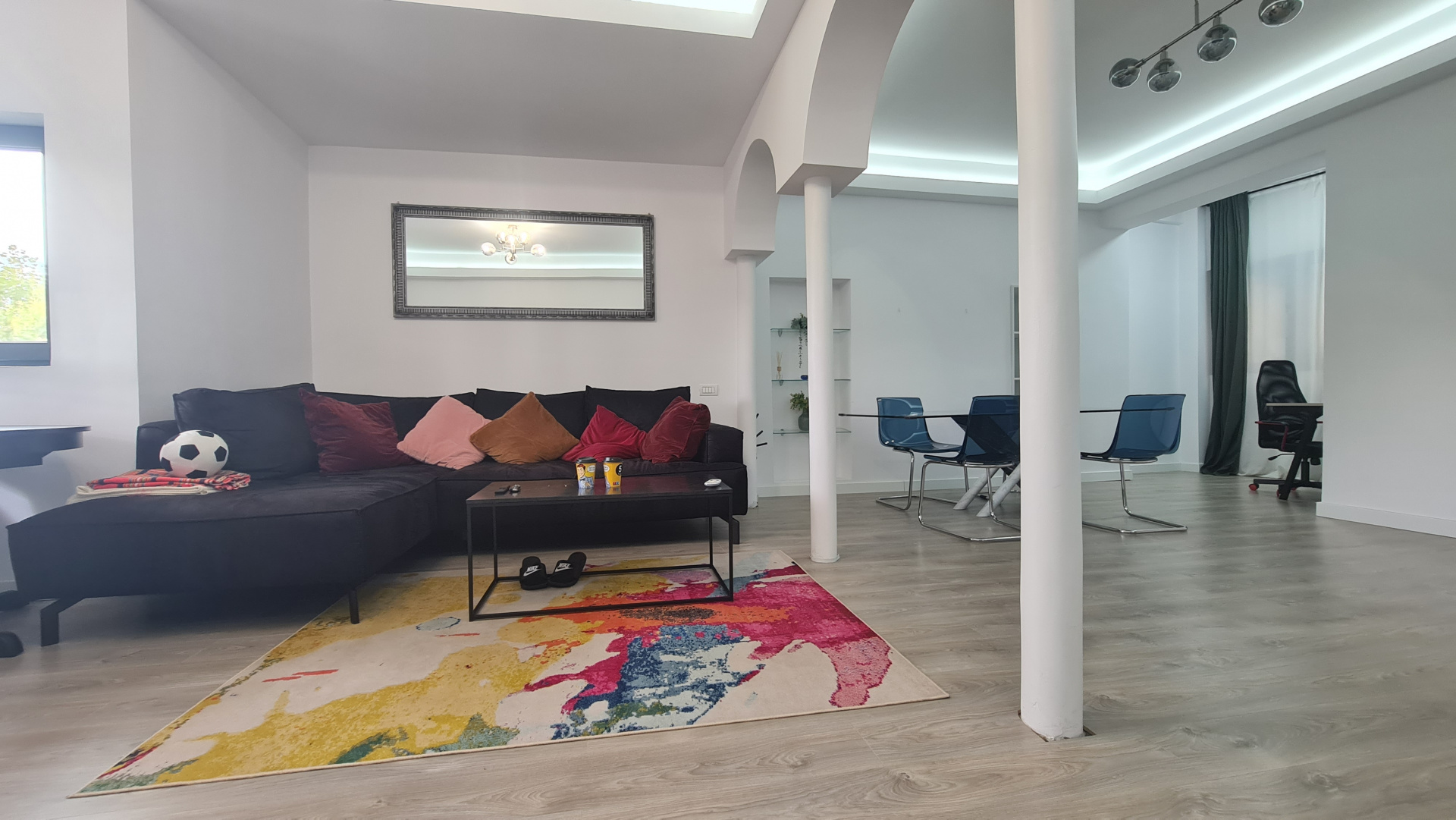 •Stare & flexibilitate: mobila existentă oferă confort imediat, dar spațiul poate fi eliberat sau reconfigurat în funcție de activitate — flexibilitate completă pentru transformare în studio foto, birou modern, showroom sau atelier creativ.